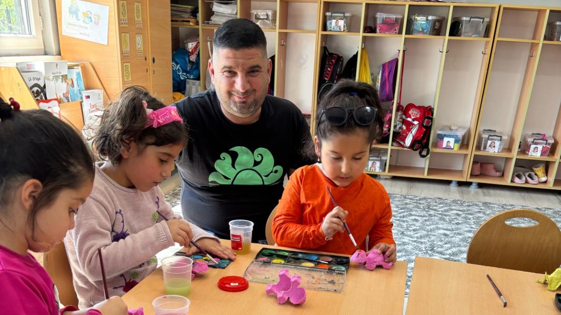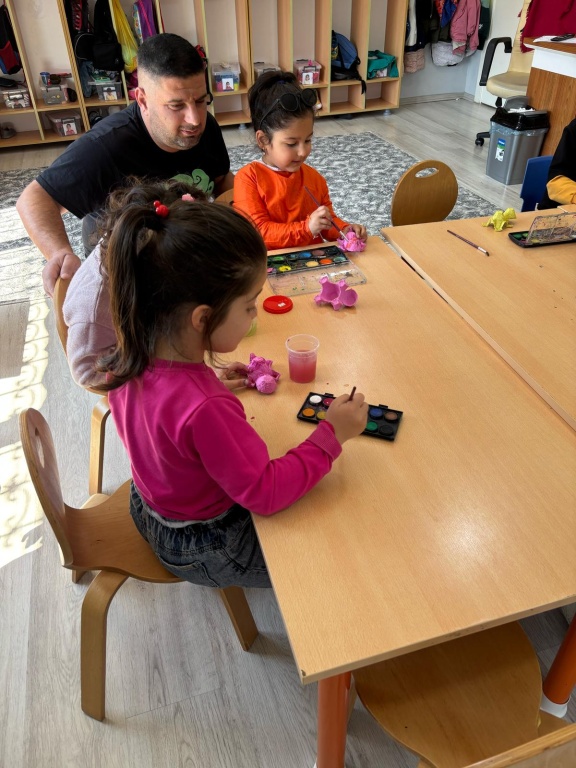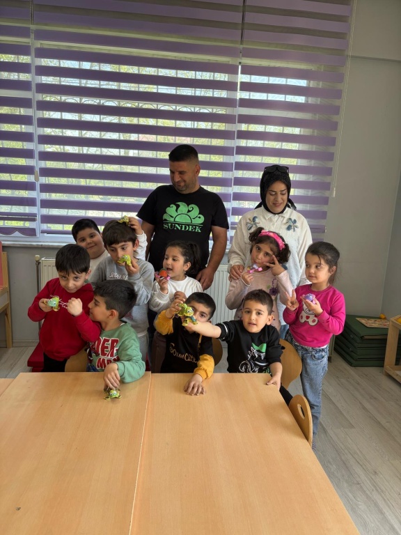Okulumuzda yürütülmekte olan Babamla... projesi kapsamında öğrencimiz Eylül Mira'nın babası Şahin beyi okulumuzda misafir ettik. Çocuklarla birlikte artık materyallerle kaplumbağa etkinliği yaptılar, sohbet edip hoş vakit geçirdiler. Şahin Beyin çocuklara ikramda bulunması çocukları çok mutlu etti. Bu güzel etkinlik için Eylül Mira ve ailesine çok teşekkür ederiz.